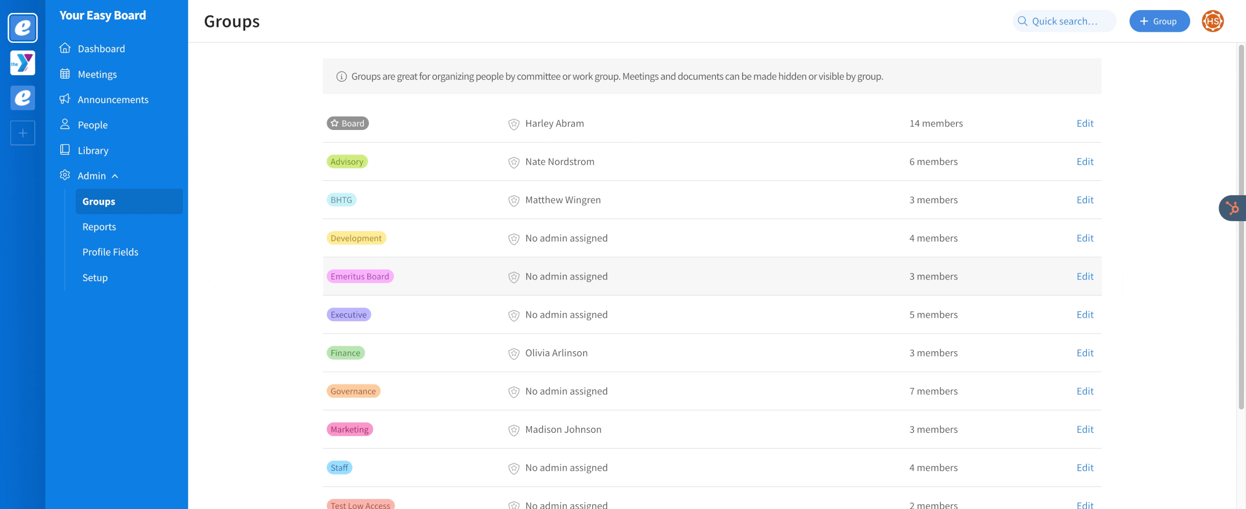 Group admins are standard users who have been promoted by a Super Admin to manage one or more groups. Group admins can create meetings, send out announcements, and upload documents for the group(s) for which they are an Admin.